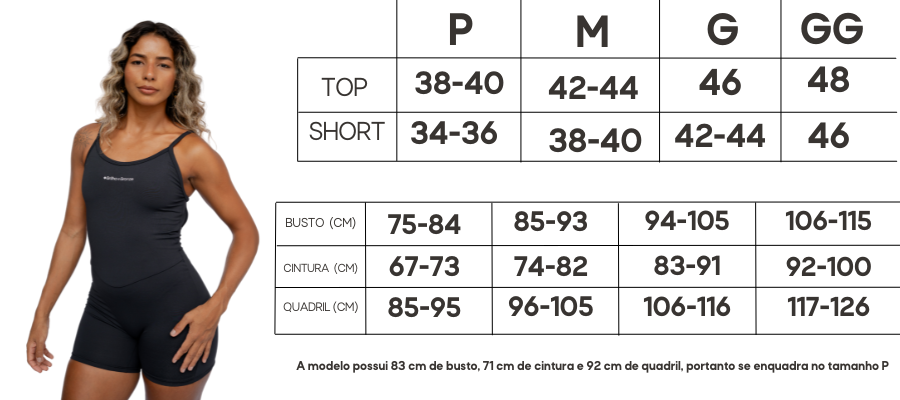 Abaixo preparamos uma tabela de medidas geral, ideal para quem já sabe suas medidas de busto, cintura e quadril, facilitando ainda mais a escolha do seu tamanho perfeito.