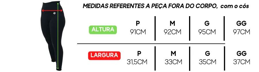 Abaixo preparamos uma tabela de medidas do short FORA DO CORPO, assim você pode comparar as medidas com um short que você já use!